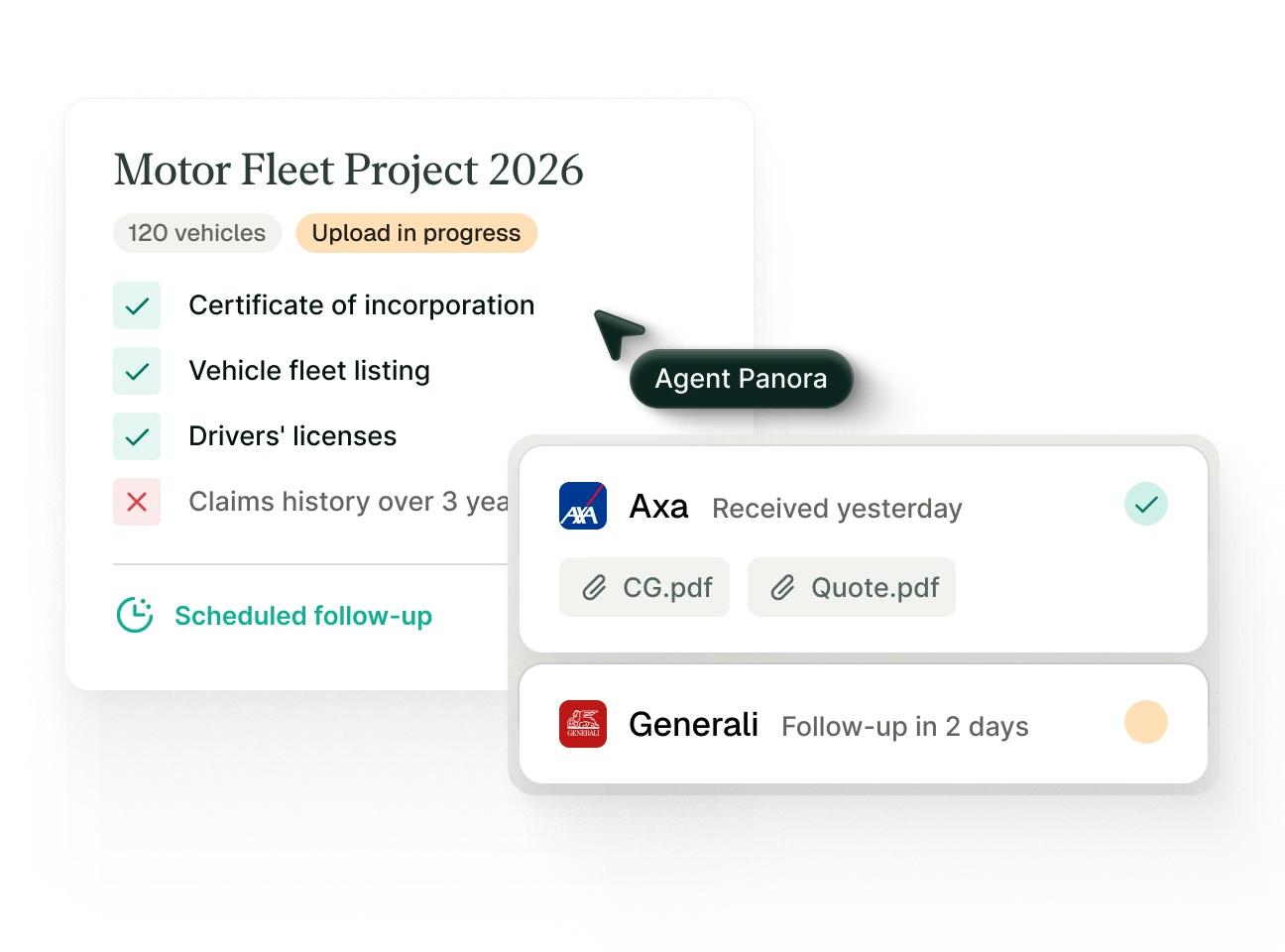 All transactions are encrypted, logged and traceable. Panora is built to support regulatory frameworks applicable to insurance distribution, including the Insurance Distribution Directive (IDD).