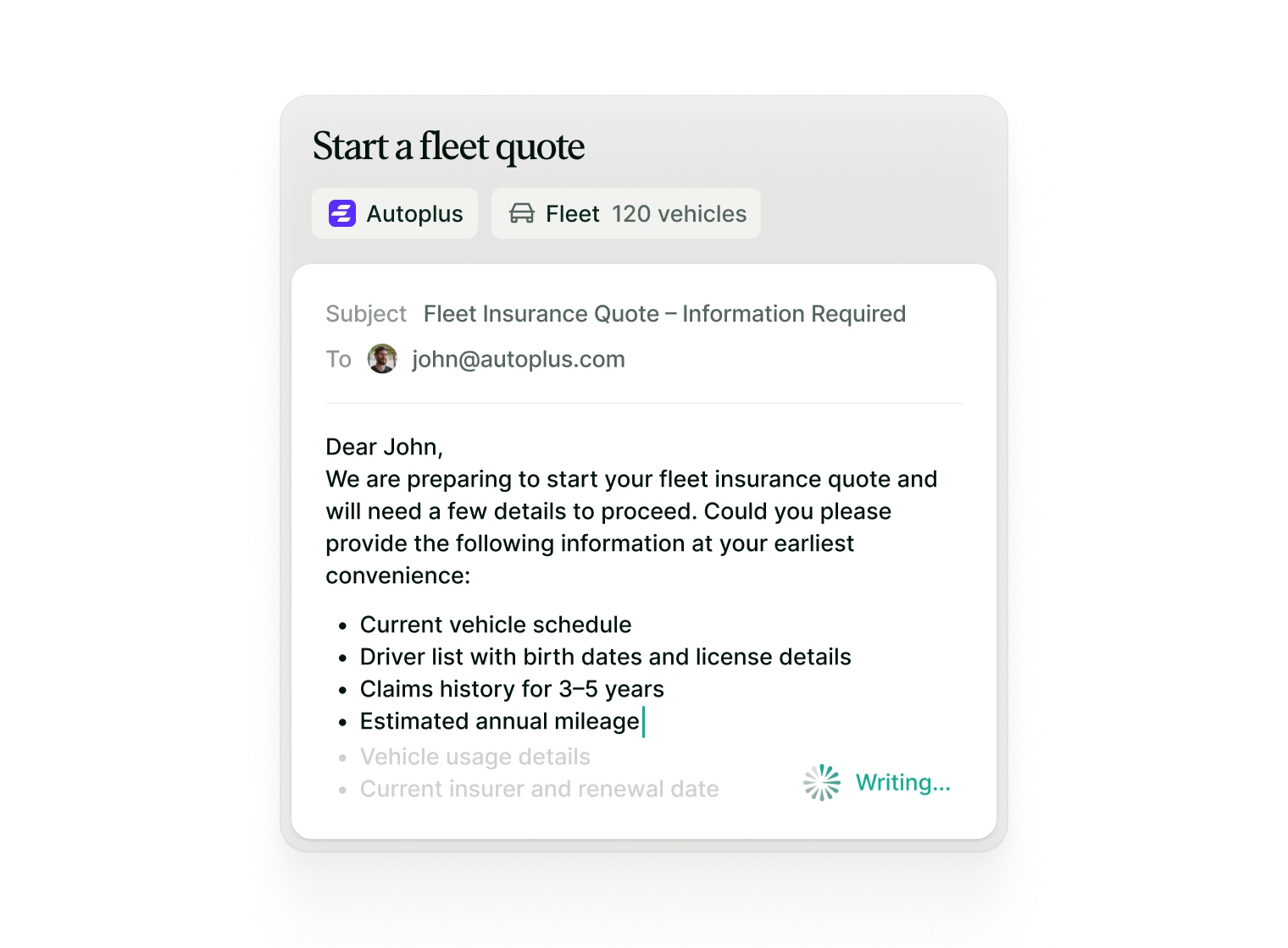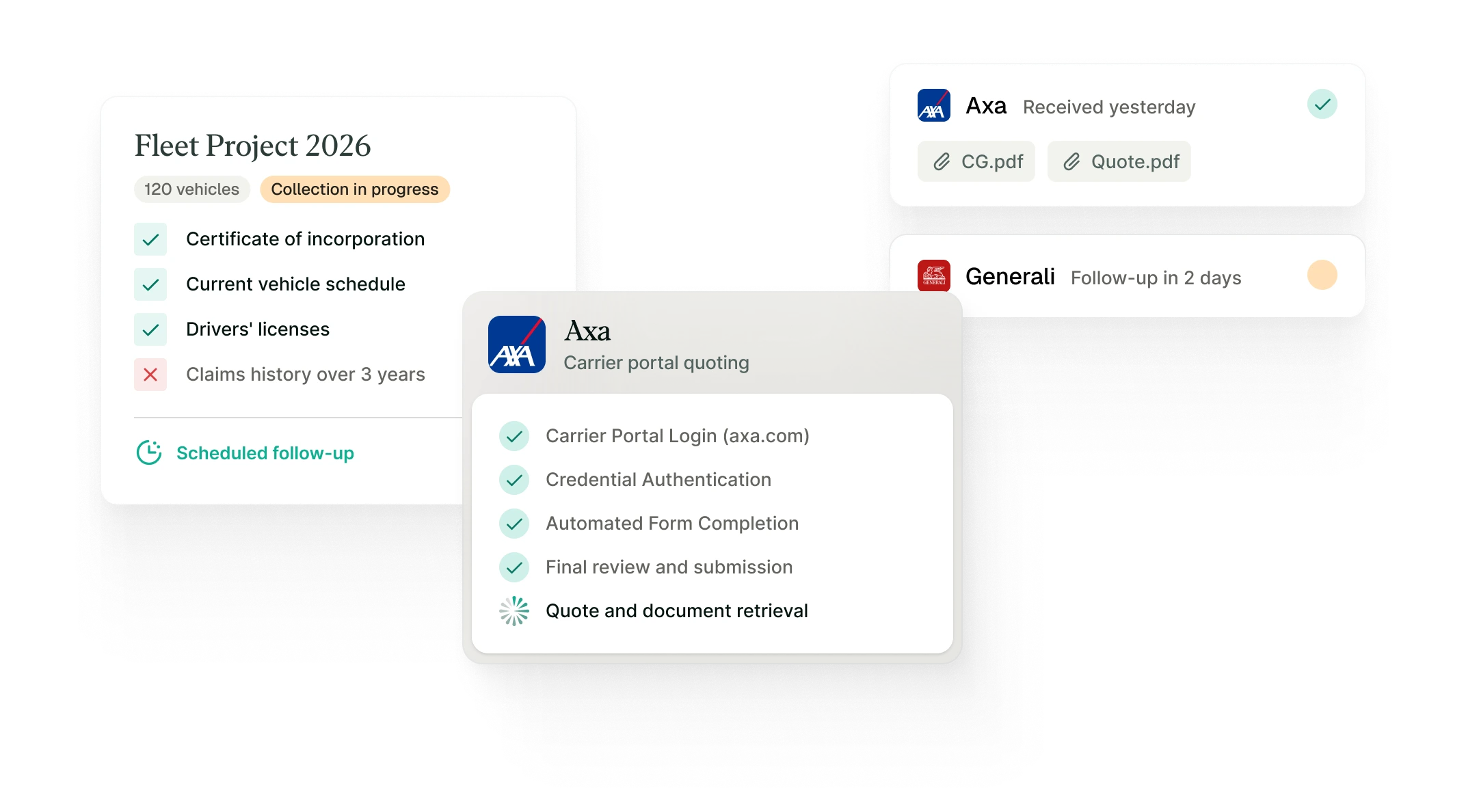 Carrier responses and quotes are automatically consolidated into the correct case file, structured and ready for side-by-side comparison.