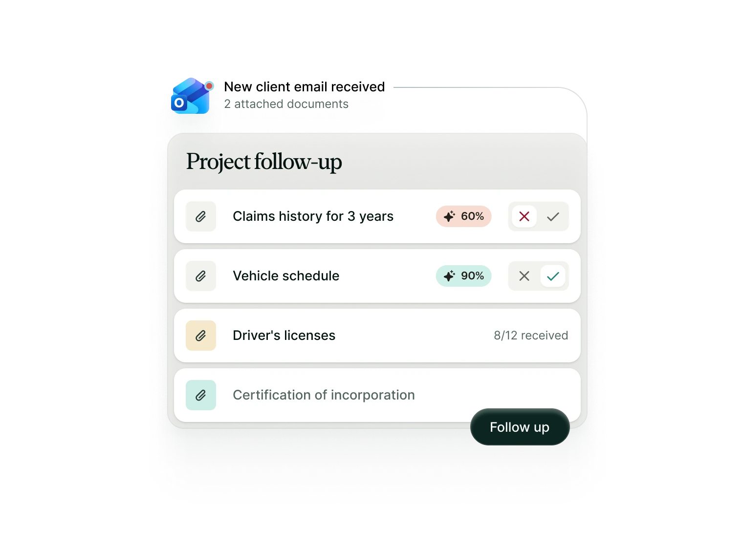 Automatically generate and send a clear checklist of required documents to your client.